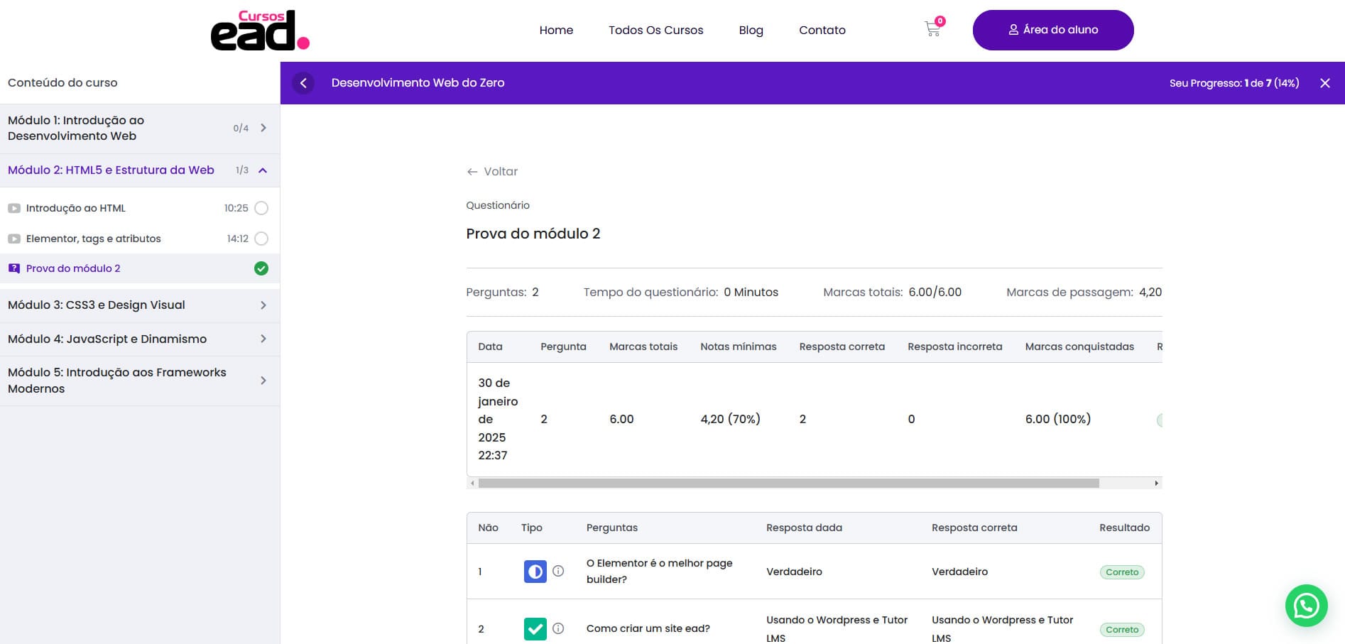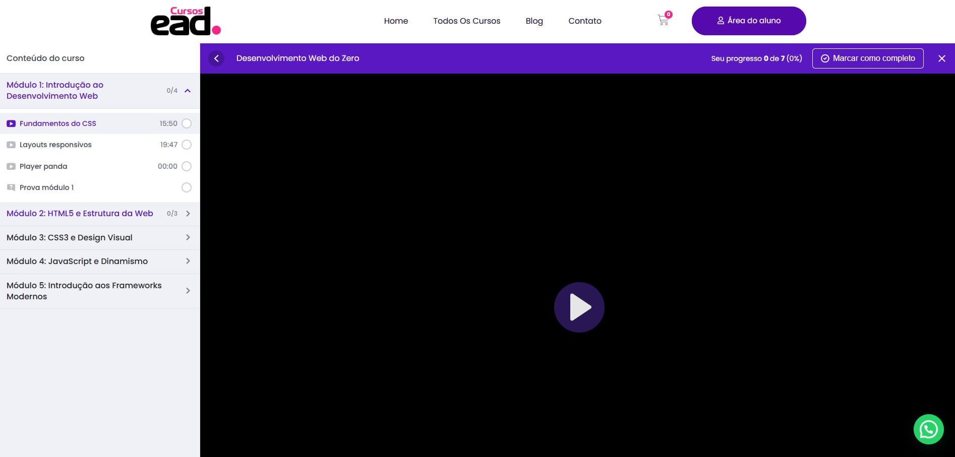 Área do Aluno – Experiência imersiva para os estudantes acompanharem seu progresso.