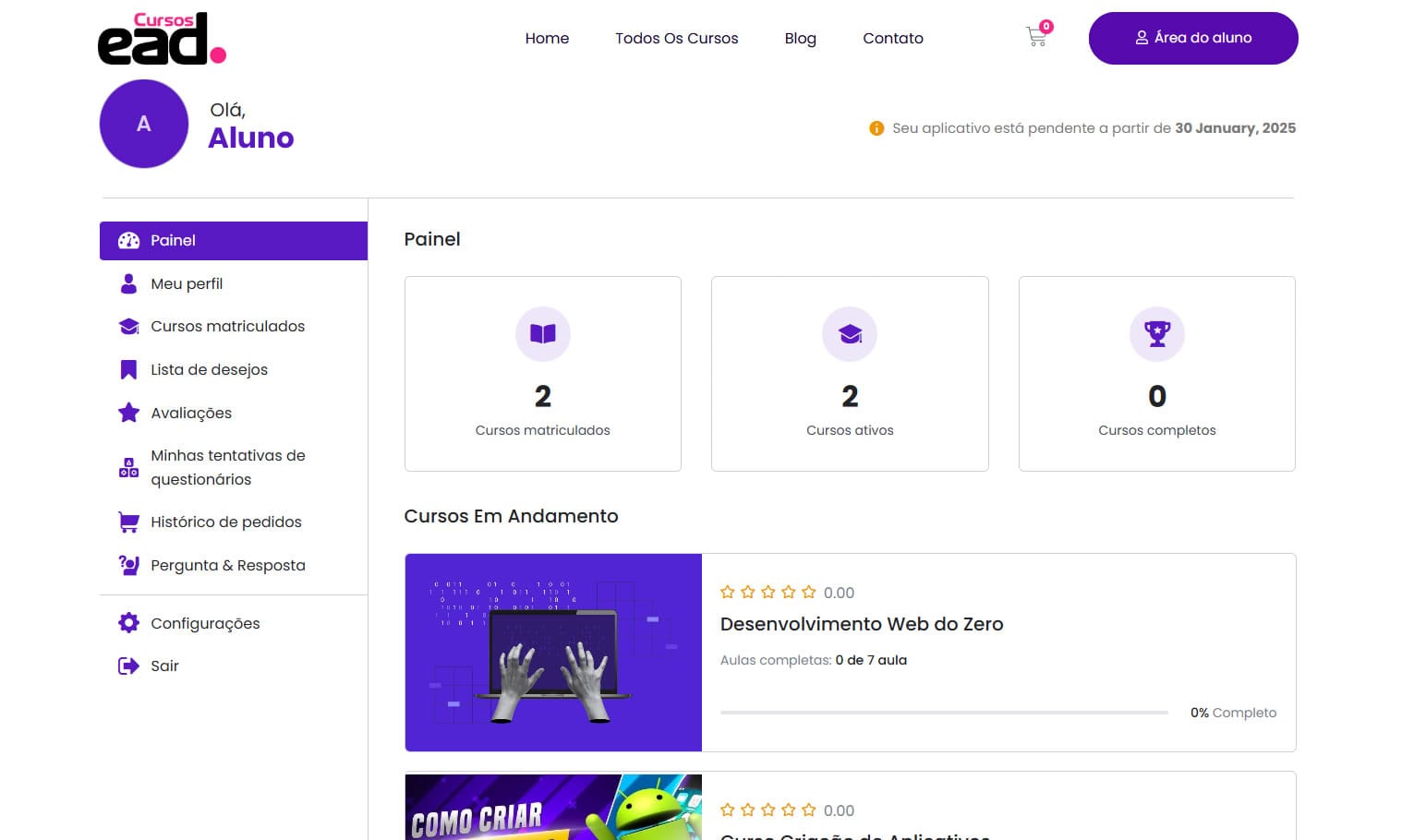 Transforme sua ideia em uma poderosa plataforma de ensino a distância com nosso template EAD. Completo, moderno e intuitivo, ele oferece todos os recursos essenciais para criar e gerenciar cursos online de forma profissional.